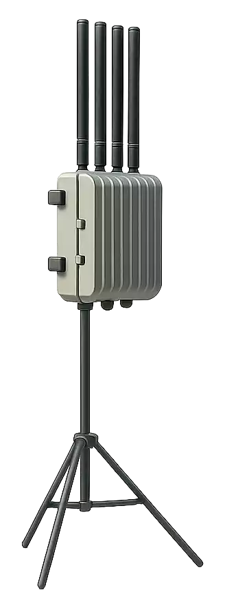 Opera entre 300MHz y 6000MHz, capturando señales de radio para alertar sobre intrusiones. Informa con alarmas visibles y sonoras la detección. Neutraliza UAVs forzándolo a aterrizar o alejarse de la zona de riesgo.