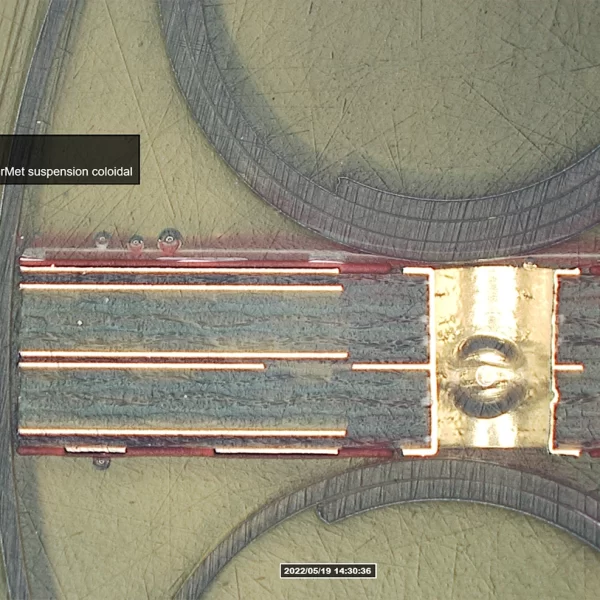Decapsulado con ácido nítrico y sulfúrico, control de tiempo y temperatura.